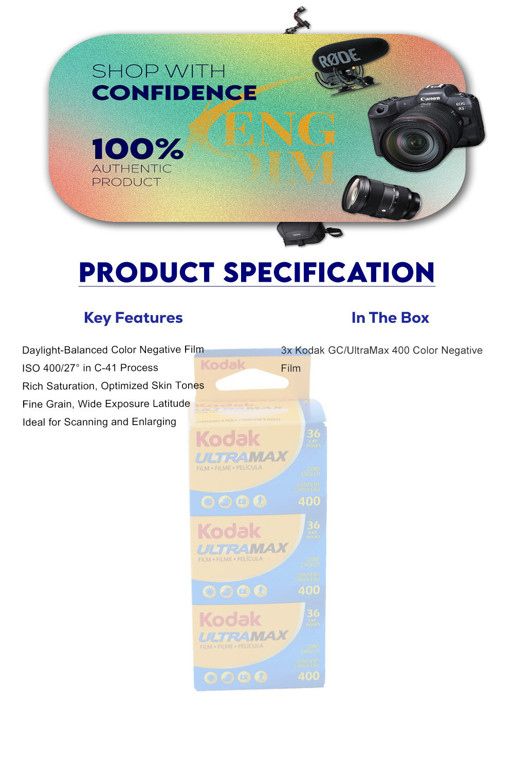 Kodak UltraMax 400 | GOLD 200 Color Negative Film (35mm Roll Film, 36 Exposures, 3-Pack) Ratings: 0 - 0 votes