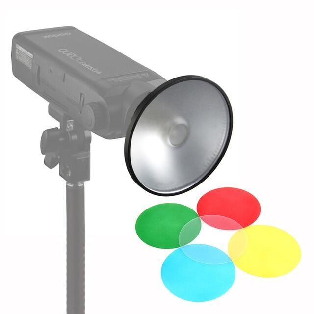Designed to work with reflector, Limits light spread and provides sharper shadows. Four colors(Green, Yellow, Red, Blue) in a pack to color light for the background.